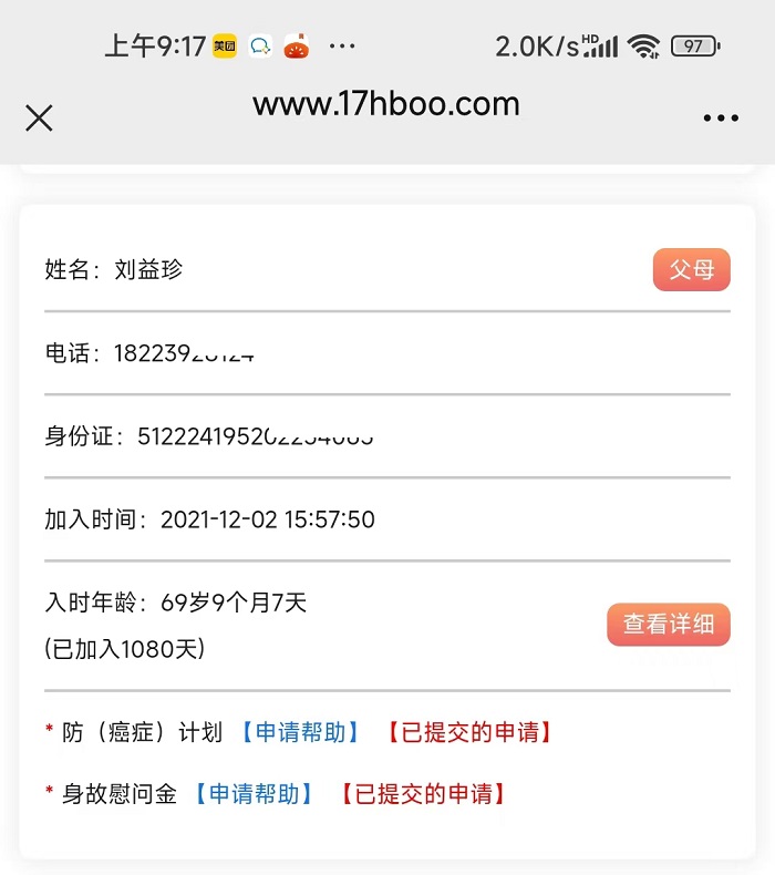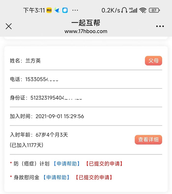 本人毕存兰是一起互帮的有效会员,婆婆刘益珍也是一起互帮有效会员,于2024年10月26日因病身故,现向一起互帮平台申请慰问金帮助。