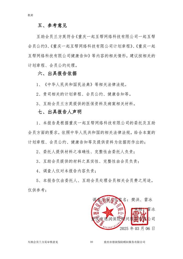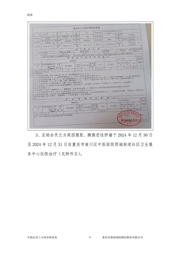 调查员通过面访家属,走访其就诊医院及其它可能就诊的医院,排查既往病史,核查其医保、商保,发现未有不符合互助条件的情形。